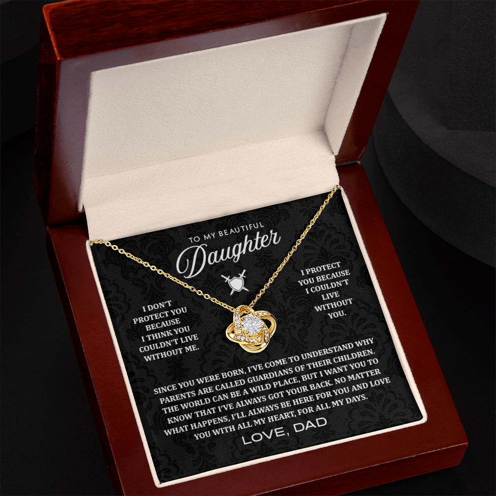 To My Beautiful Daughter: I don’t protect you because I think you couldn’t live without me. I protect you because I couldn’t live without you. Since you were born, I’ve come to understand why parents are called guardians of their children. The world can be a wild place, but I want you to know that I’ve always got your back. No matter what happens, I’ll always be here for you and love you with all my heart, for all my days. Love, Dad.