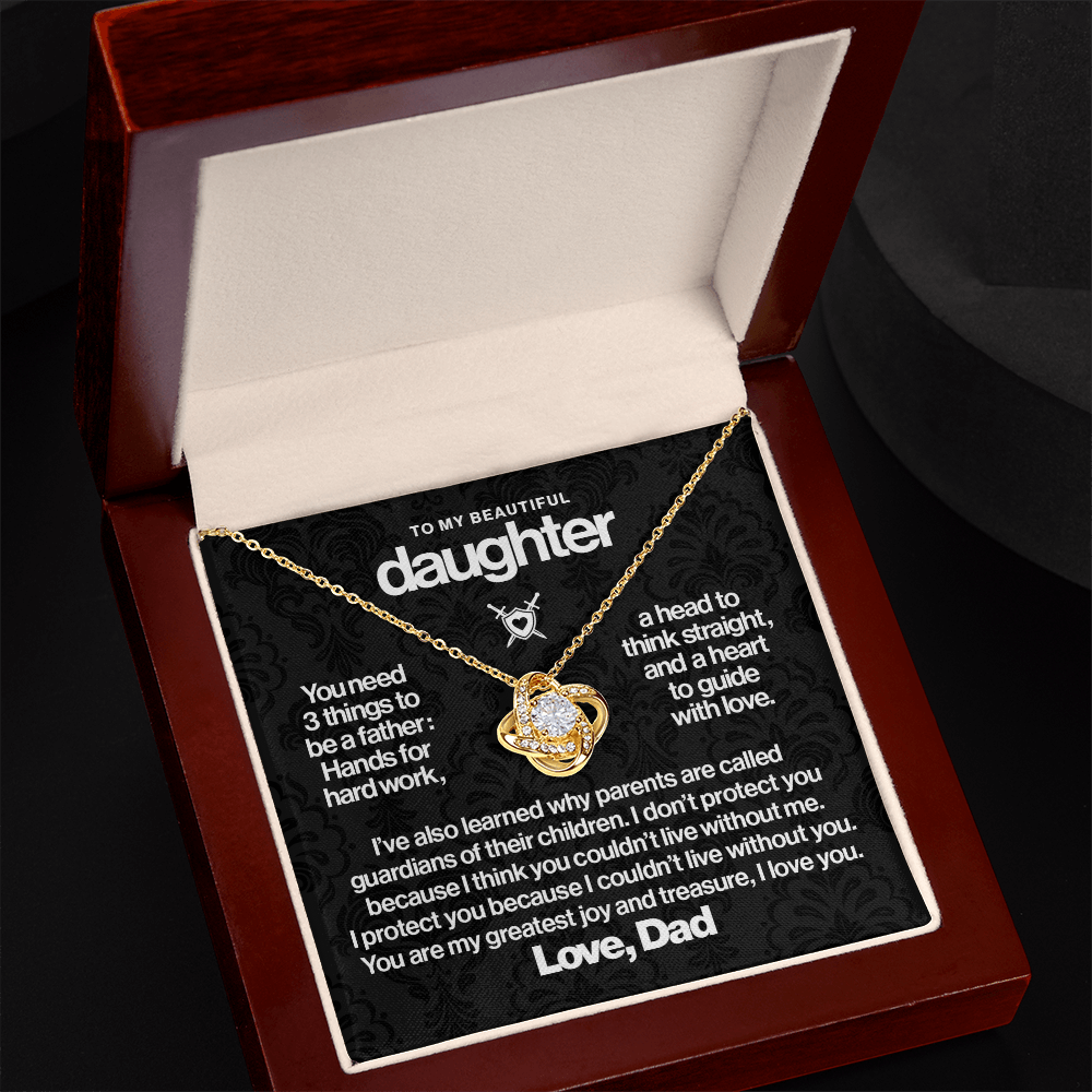 To my beautiful daughter, you need three things to be a father: Hands for hard work, a head to think straight, and a heart to guide with love. I’ve also learned why parents are called guardians of their children. I don’t protect you because I think you couldn’t live without me. I protect you because I couldn’t live without you. You are my greatest joy and treasure, I love you. Love, Dad.