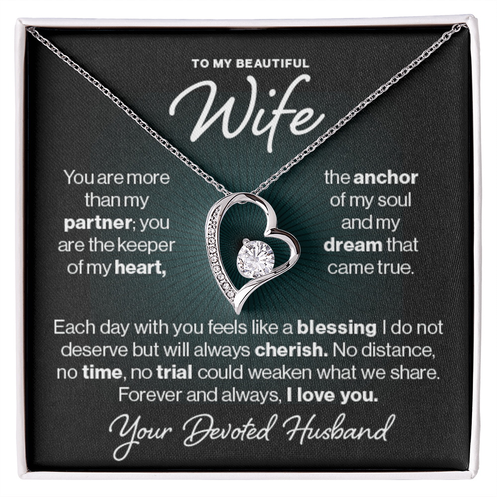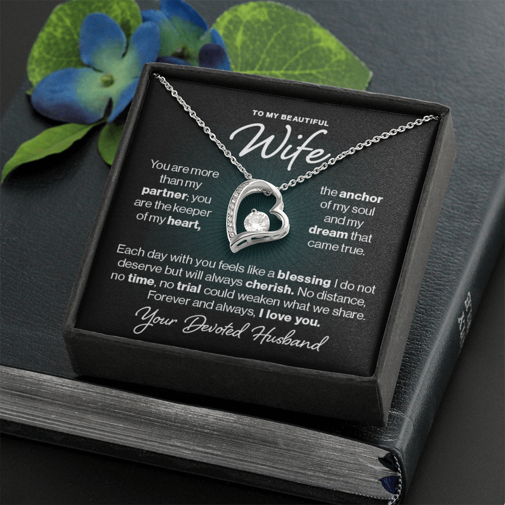 To My Beautiful Wife, You are more than my partner; you are the keeper of my heart, the anchor of my soul, and the dream that came true. Each day with you feels like a blessing I do not deserve but will always cherish. No distance, no time, and no trial could weaken what we share. Forever and always, I love you. Your devoted husband.